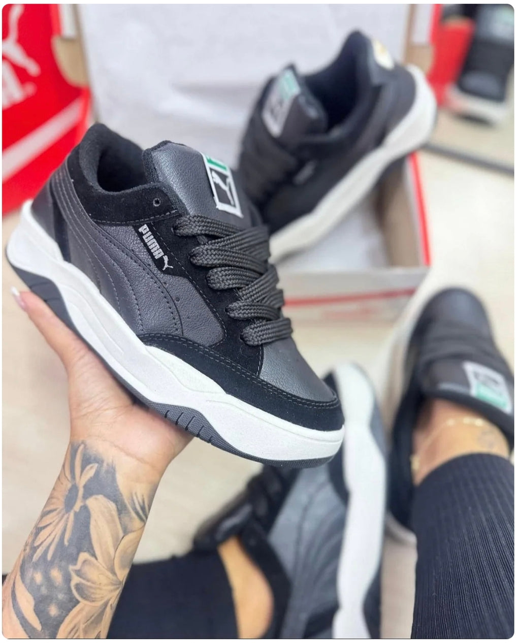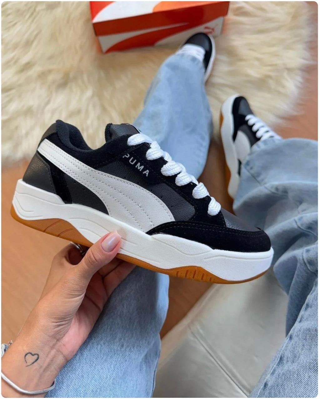 Quando o preto se une ao brilho da presença sua, nasce o Puma 180 feminino elegante, versátil e feito para destacar qualquer produção.